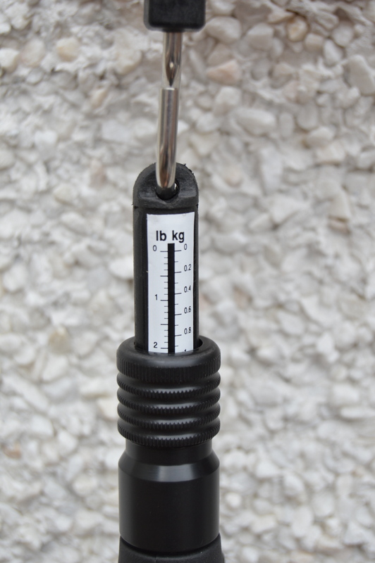 A high tensile steel and zinc coated spring was developed to provide years of use and more importantly accuracy. This has been tested to a +/- 2% and is within a fully adjustable calibration housing made from black Aceto. The vinyl scale reading is completely waterproof.